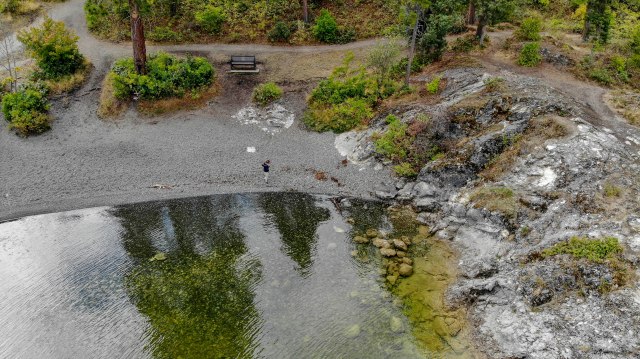 A drone’s eye view of Okanagon Lake looking north.