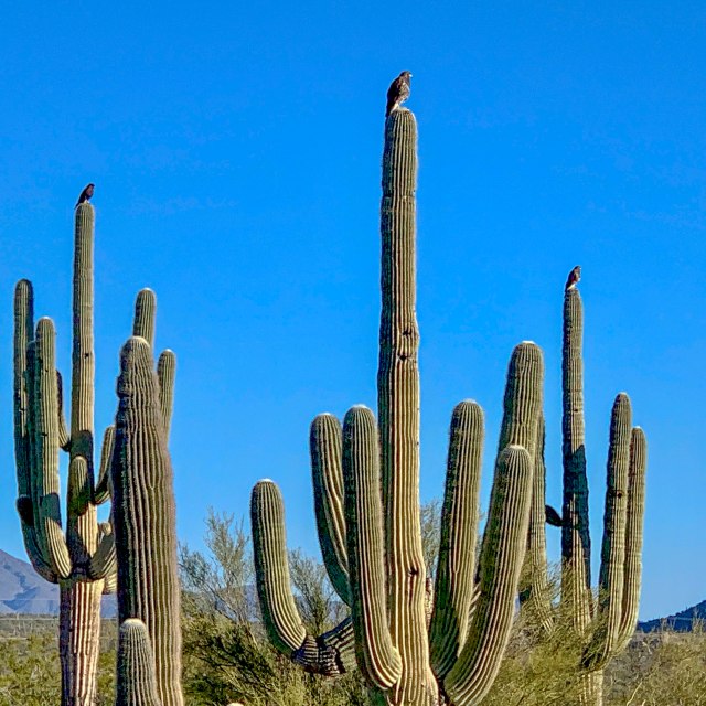 A group of Harris hawks looking for breakfast along the Browns Ranch hiking trail.
