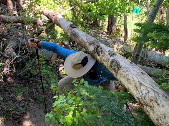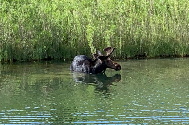 Of course, wildlife sightings are always a HUGE plus. This evening walk around lower Deer Valley was very kind to us with a very fortuitous sighting of this guy just trying to cool off – –