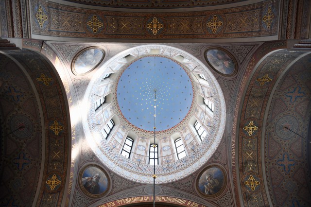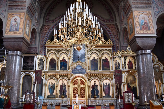 The Uspenski Orthodox Cathedral was built for the Russian military in 1868. The large upper done represents the heart of Jesus with the 12 smaller ones representing his 12 apostles.