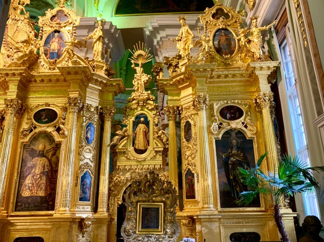 Third is the Kazan Cathedral – a functioning house of worship (the prior two are basically museums today) for the Orthodox. The sweeping exterior portico is patterned after St. Peter’s in Rome and is another city landmark.