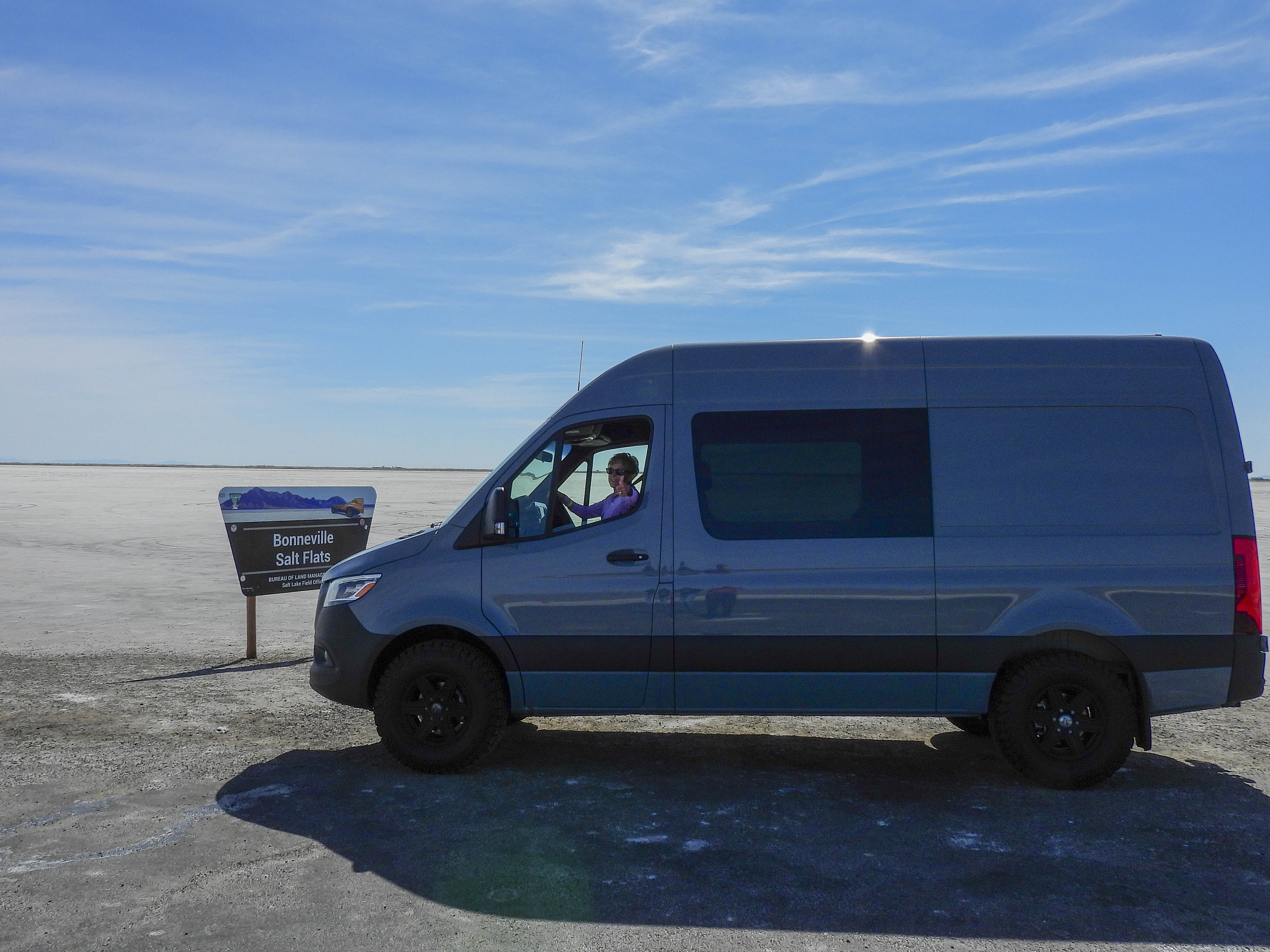 Oh Yes!  The BIG Magic Bus is being replaced by a Mini Magic.  The first step in that process was to acquire a new van from Mercedes.  Ordered in June – picked up in August.  A few day trips to try it out before it went to the ‘upfitter’ in October.  Discovered Cedar Breaks NM, which was beautiful.  Also put it thru its paces on the Bonneville Salt Flats!  What a fun day that was.