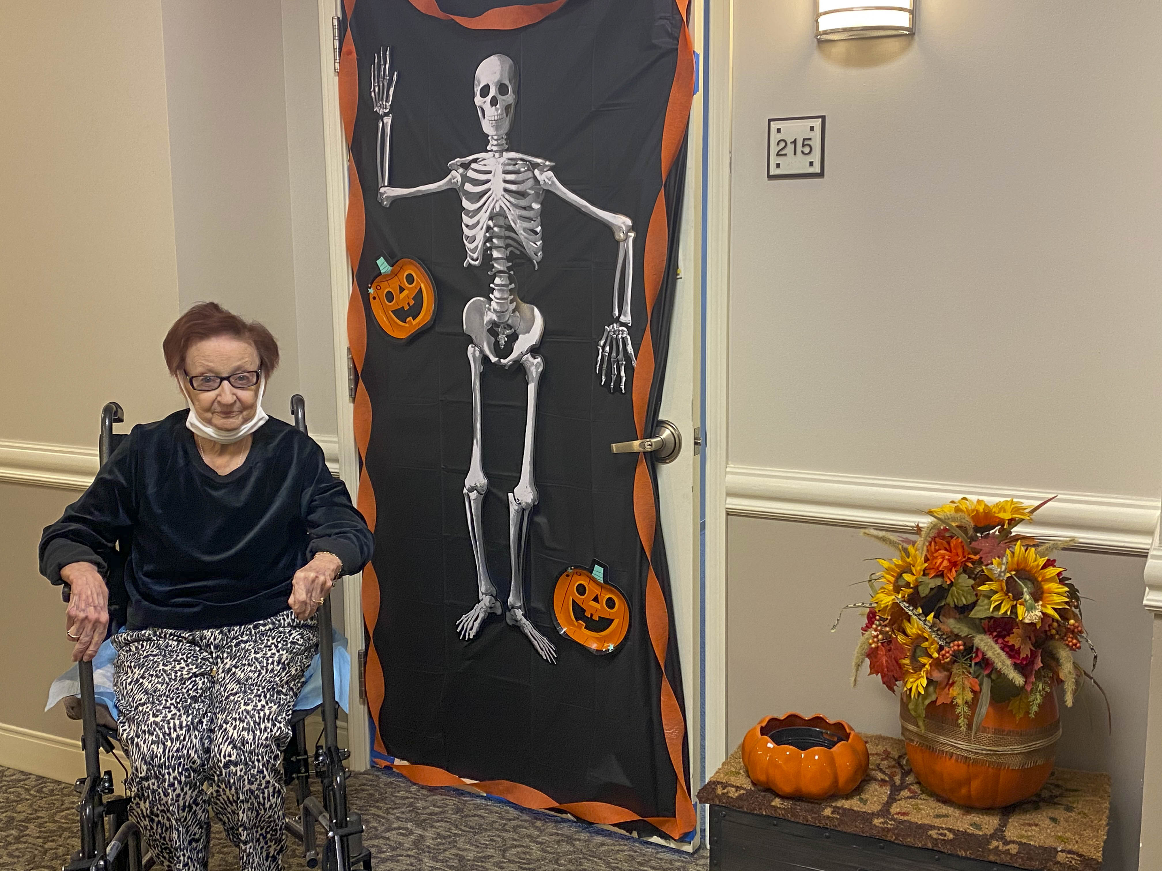 It was also great to see family again.  The middle of October, Mom Dorthy’s facility began allowing essential visitors inside if they obtained a negative COVID test.  So – after 7 months E could finally give Mom a hug!  And get her ready for Halloween – –