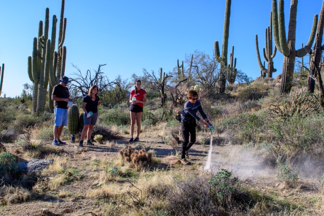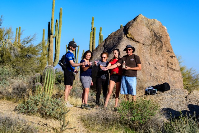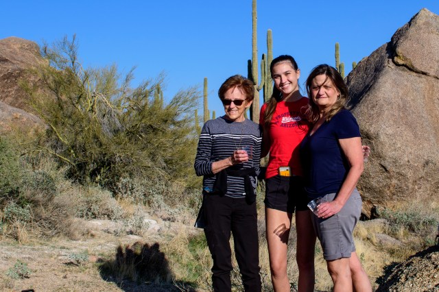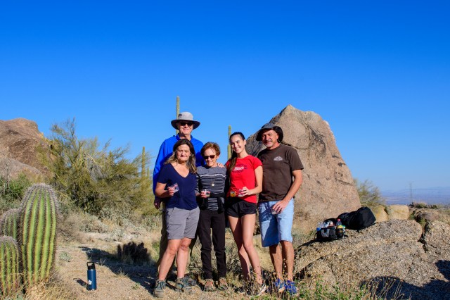 February 27th would have been Mom’s 89th birthday. On that day, our little family celebrated by doing what she requested. Dorthy and Kenneth’s ashes were spread together in the desert where they could view the McDowell Mountains and the fabulous Arizona sunsets. We had a little toast to them using some Vodka Mom had kept for almost 60 years!! (She and Kenneth bought it down in Nogales very early in their lives together and she would never get rid of it even though neither of them drank Vodka!!). It was a beautiful, clear day appropriate for a glorious send-off.