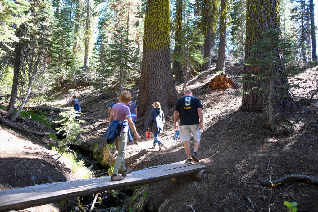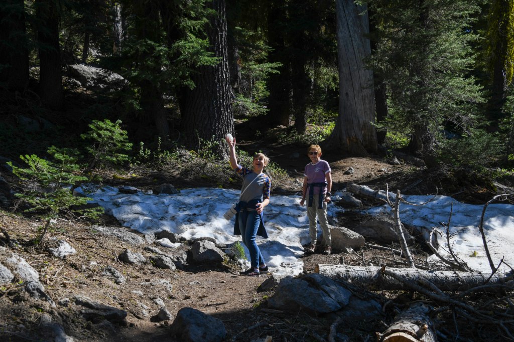 If one enters from the south through the Yah-man-nee visitor center, there is easy access to the best known hydrothermal areas in the park – Sulphur Works and Bumpass Hell;-) Continuing north there are stunning lakes – Summit Lakes, North and South – and amazing views of Lassen Peak. Eventually one winds up at the northwest corner of the park in the Manzanita Lake area. This is actually where we started our adventure with the Shoe Crew.