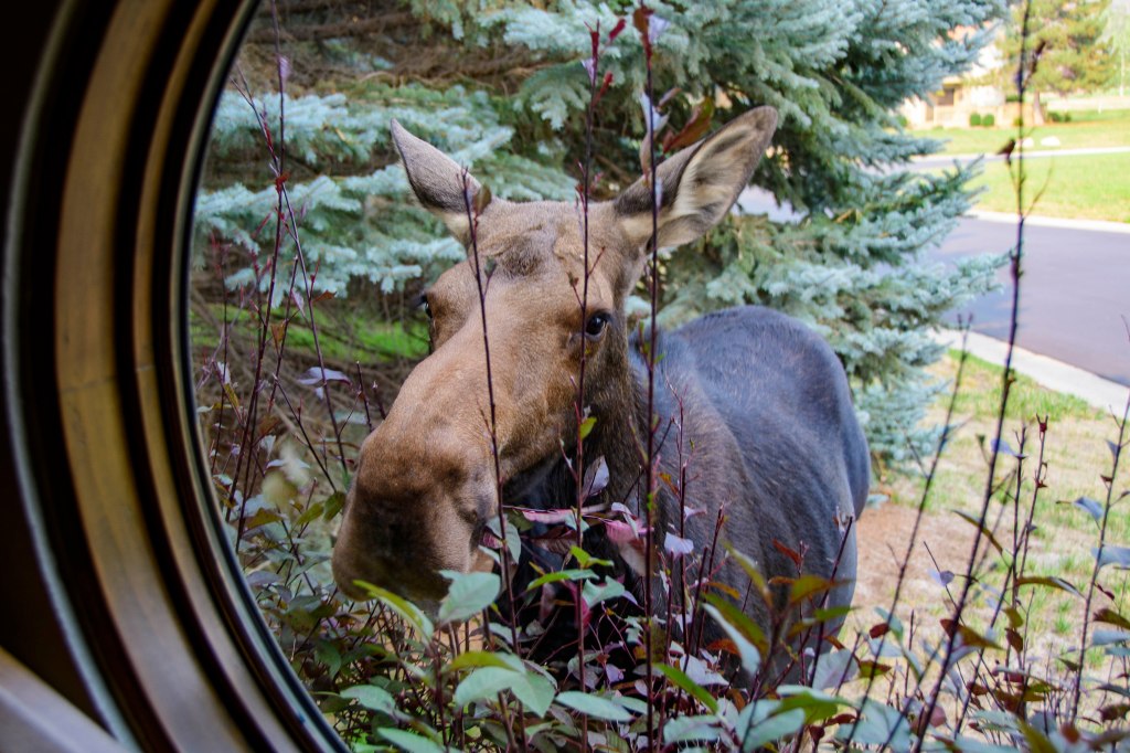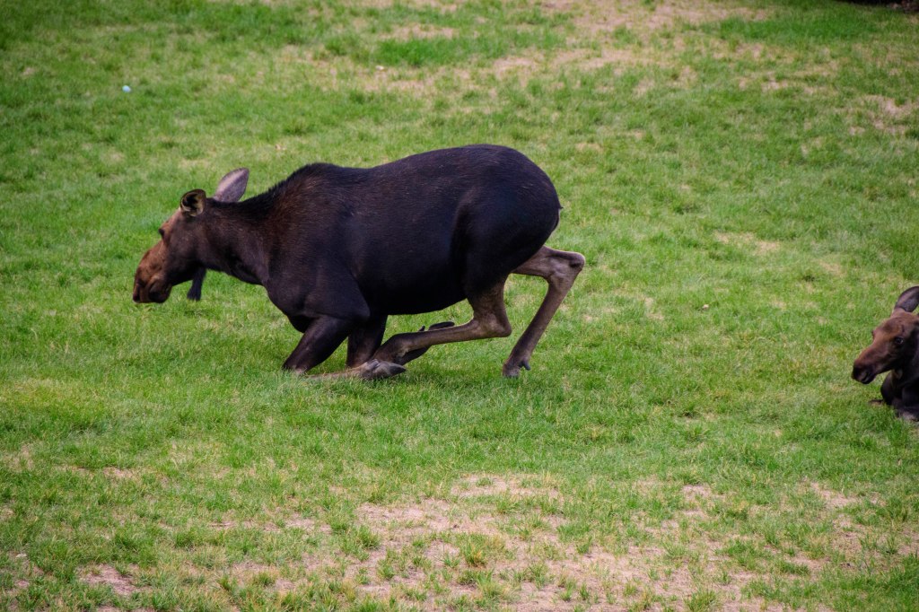 Moose always amaze and entertain us. This year a cow and her calf spent several days in ‘our yard’ and just outside one of our windows. Needless to say, many hours were spent watching these two.