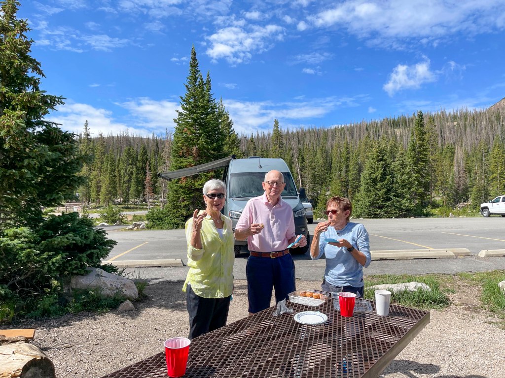 Frequent dinners with old friends and neighbors kept us busy several nights a week. This summer we were also fortunate to have several sets of friends come and enjoy what Park City has to offer. The Miller’s and Plumley’s – both from Scottsdale – decided to escape the AZ heat for the month of July. This gave us plenty of time to enjoy many dinners, golf and drives with each. It was great fun showing the Plumley’s that sometimes the shortest distance to a destination is NOT the most fun. They got to experience a several hour drive (instead of 1 1/2 hr.) to Evanston, WY via Mirror Lake in the Uinta’s, where a cinnamon roll and coffee break was enjoyed in a beautiful setting.
