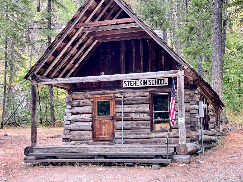 A typical hike for folks like us is the 7 mile round trip hike to Rainbow Falls (1.5 miles past the Bakery – so a stop there makes it palatable;-) On the way, one passes the 100 year old Stehekin School. After looking in on the old, it was good to see a new school has taken its place just up the road.