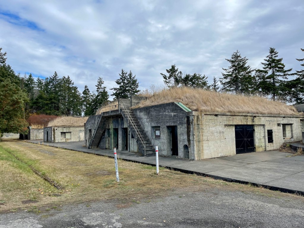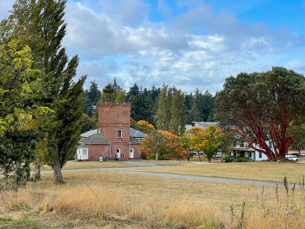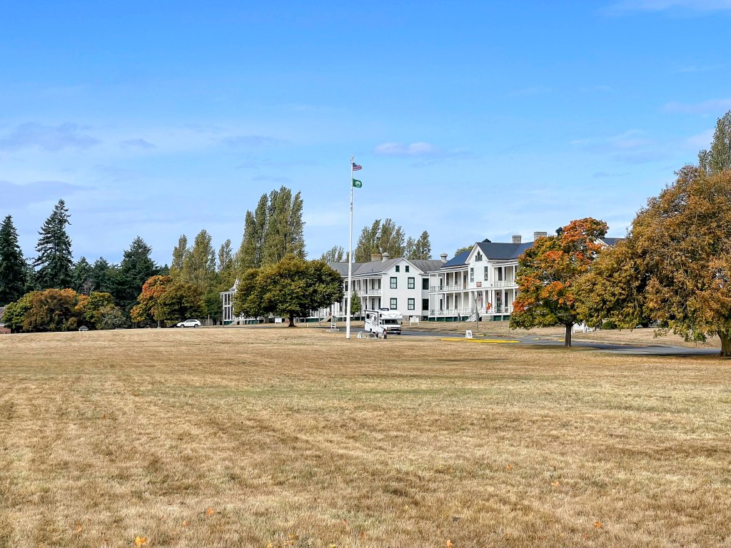 The next home base for a few nights was Fort Worden State Park just north of Port Townsend, where we had a fantastic parking place. (Too bad it rained the entire time there;-( ) Port Townsend was established in the mid-eighteenth century as a strategic military outpost and the entire downtown is now on the National Register of Historic Places. Fort Worden is a historic army base perched at the entrance of Admiralty Inlet. If you look closely at a few of the pictures of the parade grounds, etc., you might recognize them from ‘An Officer and a Gentleman’!
