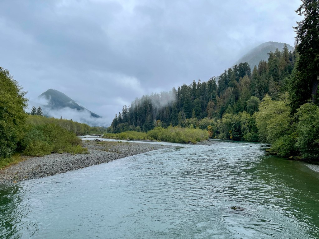 Staircase features a number of subalpine hiking trails in the old-growth forests surrounding Mount Ellinor. Today’s hike would be the Staircase Rapids Loop Trail, which would take us on bridges across the Slate Creek and the North Fork Skokomish River, through striking forests, around moss covered rocks (everywhere!) and even send a blue jay to escort us!