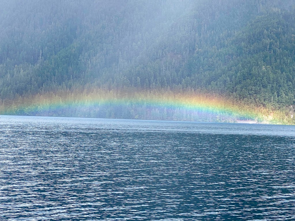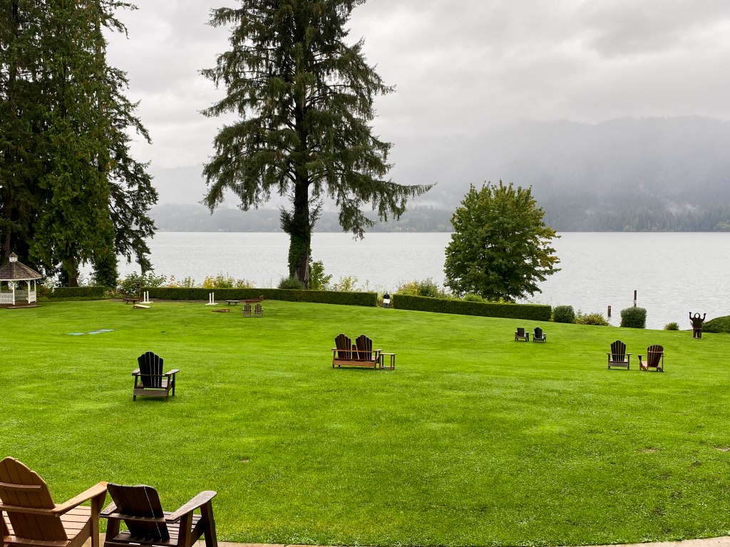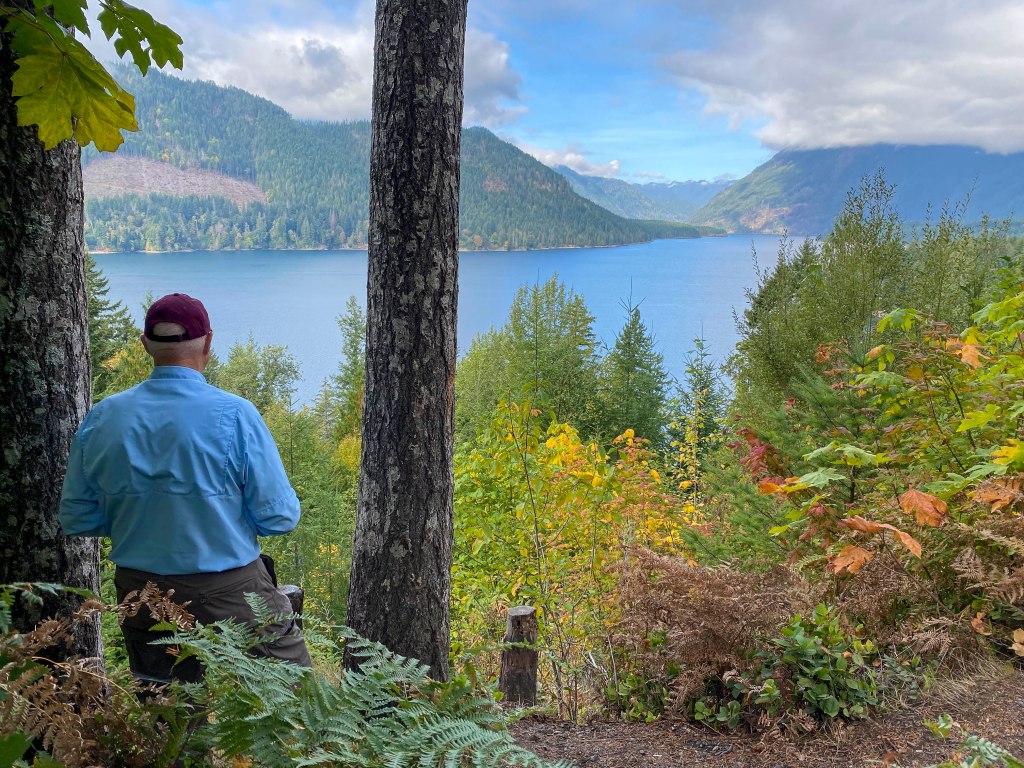As is always true, not enough time anywhere – so on our way to the rainforest side of Olympic NP. On the way a wonderful stop for lunch at Lake Crescent. A spot remembered from several years ago and delighted to return. It is really beautiful here – –
