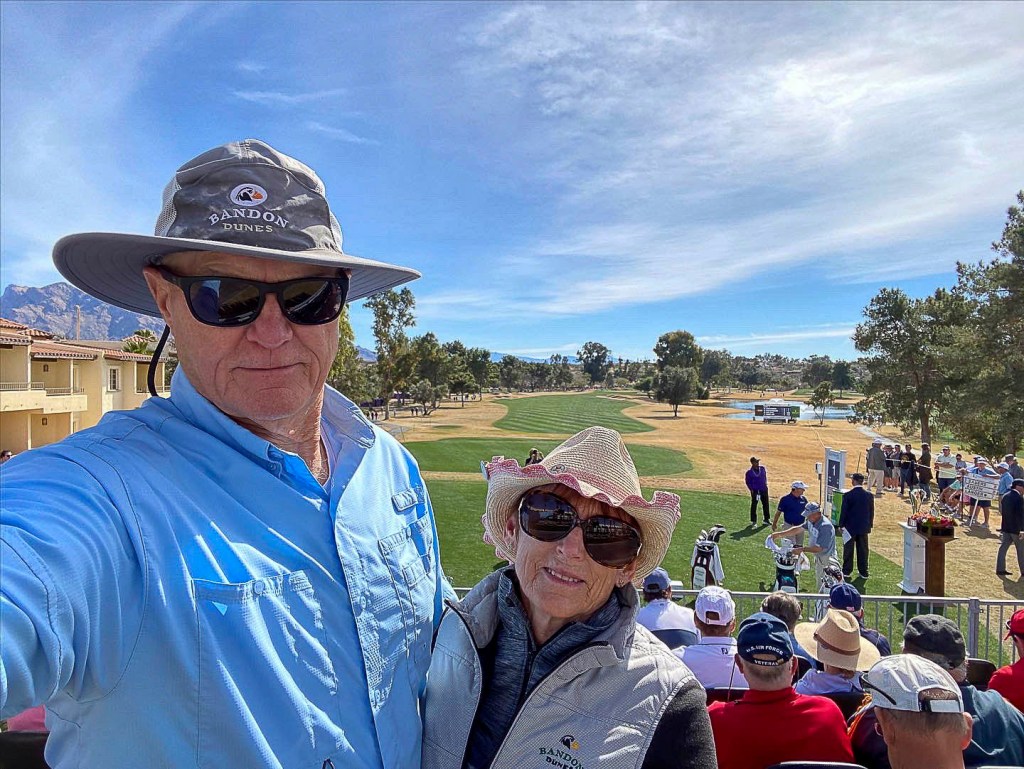 Actually, there was another overnight – Tucson to see niece Demi and her friend Ryan. There was a pretty full, fun day of breakfast, a woman’s basketball game at U of A, dinner and a dorm room tour;-) This was all followed the next day by fun at the Champions Tour Golf Tournament.