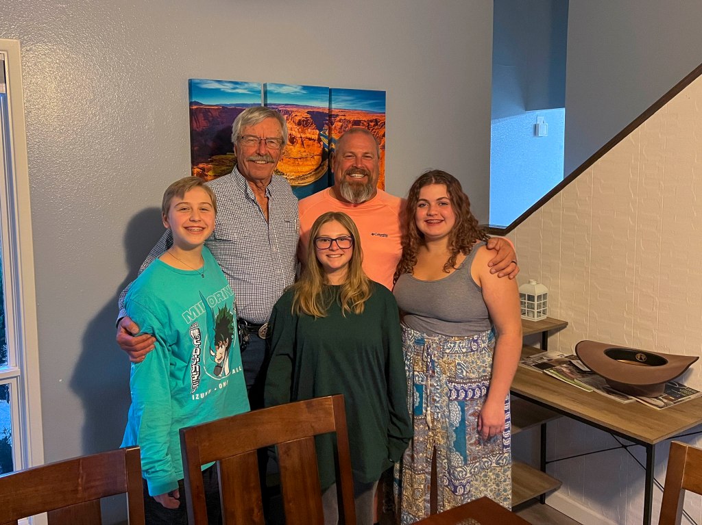 Flagstaff was close enough for Christian’s dad to be able to wander over from Heber Overgaard to celebrate Olivia’s 16th birthday AND Father’s Day. After dinner – cake was served – –