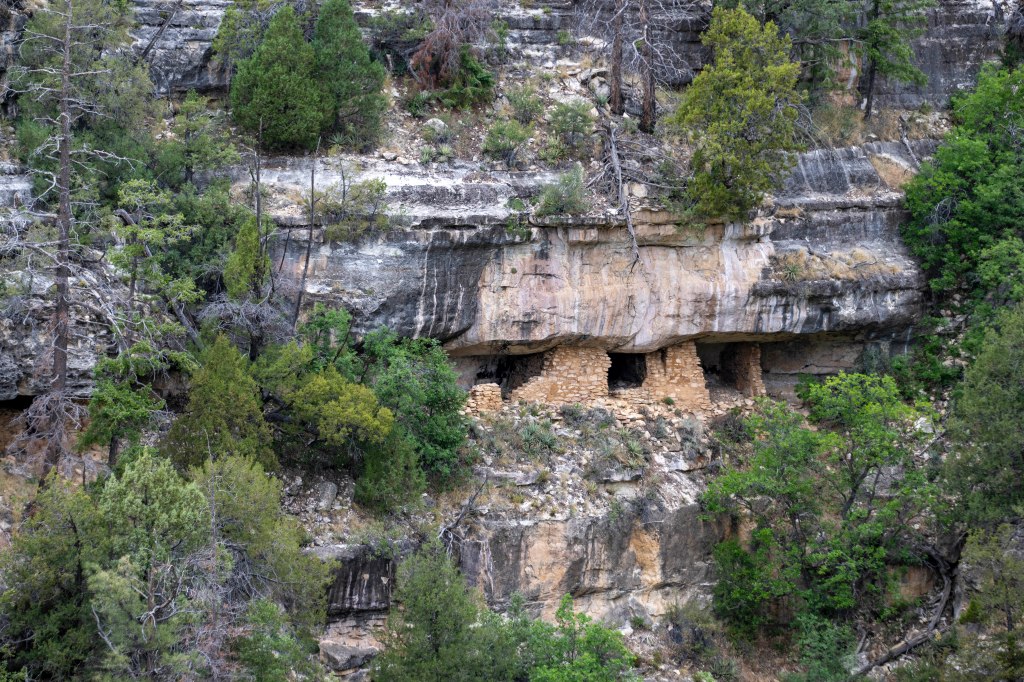 Bearizona wasn’t enough for one day – so off to Walnut Canyon National Monument (NM). Walnut Canyon was home to people today known as Sinagua – Spanish for ‘without water’. Their dwellings were sheltered by overhanging cliffs and they were the only permanent inhabitants here more than 800 years ago. They made their living by farming, hunting deer and small game, gathering useful plants and trading. These dwellings were occupied for little more than 100 years and the reason for their leaving the area is not known. The Sinagua ‘homes’ remained largely undisturbed until the railroad brought souvenir hunters in the 1880’s with theft and destruction. Thankfully, in 1915 Walnut Canyon was declared a national monument to preserve what was left. On a personal note – this is one of my favorite places to visit in Arizona!