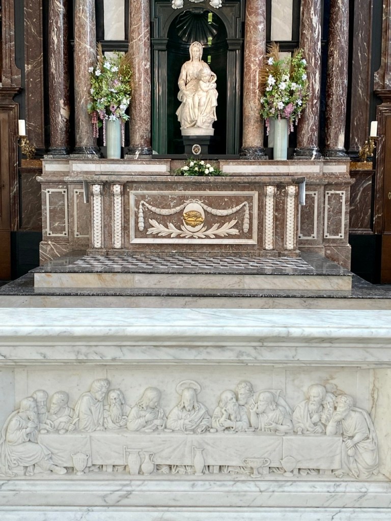The Begijnhofs were built to house women of the lay order called Beguines. They did not take the vows of a nun, but did spend days in prayer and caring for the sick. The housing was built around a peaceful garden with a church for their services. There hangs a painting of the Beguines’ patron saint, St. Elizabeth! The entry to the garden is also marked with her presence—-
