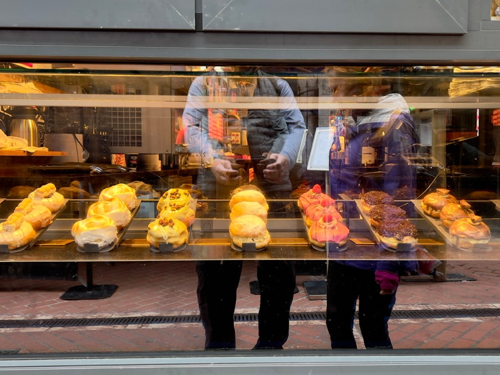 Climbing up to the church worked up an appetite, so off to Oliver Plunkett Street to find food. Wandering all the funny little side streets was quite entertaining – especially since every other shop seemed to sell donuts and very inventive donuts at that!!!
