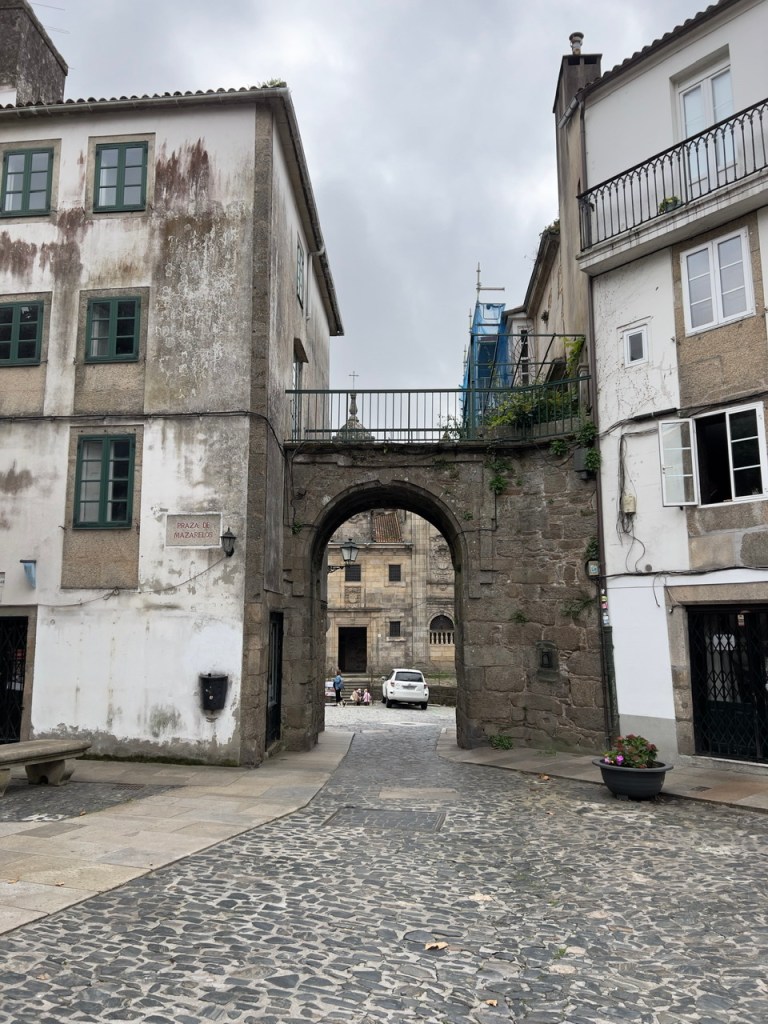 Before arriving at Plaza del Obradoiro and Catedral de Santiago, one passes into the old medieval part of the city and past the Convent de San Francisco and many of the University buildings.