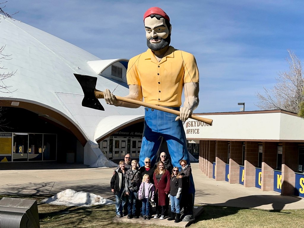 The entire Shoe Crew at Northern Arizona University with the iconic Lumberjack.