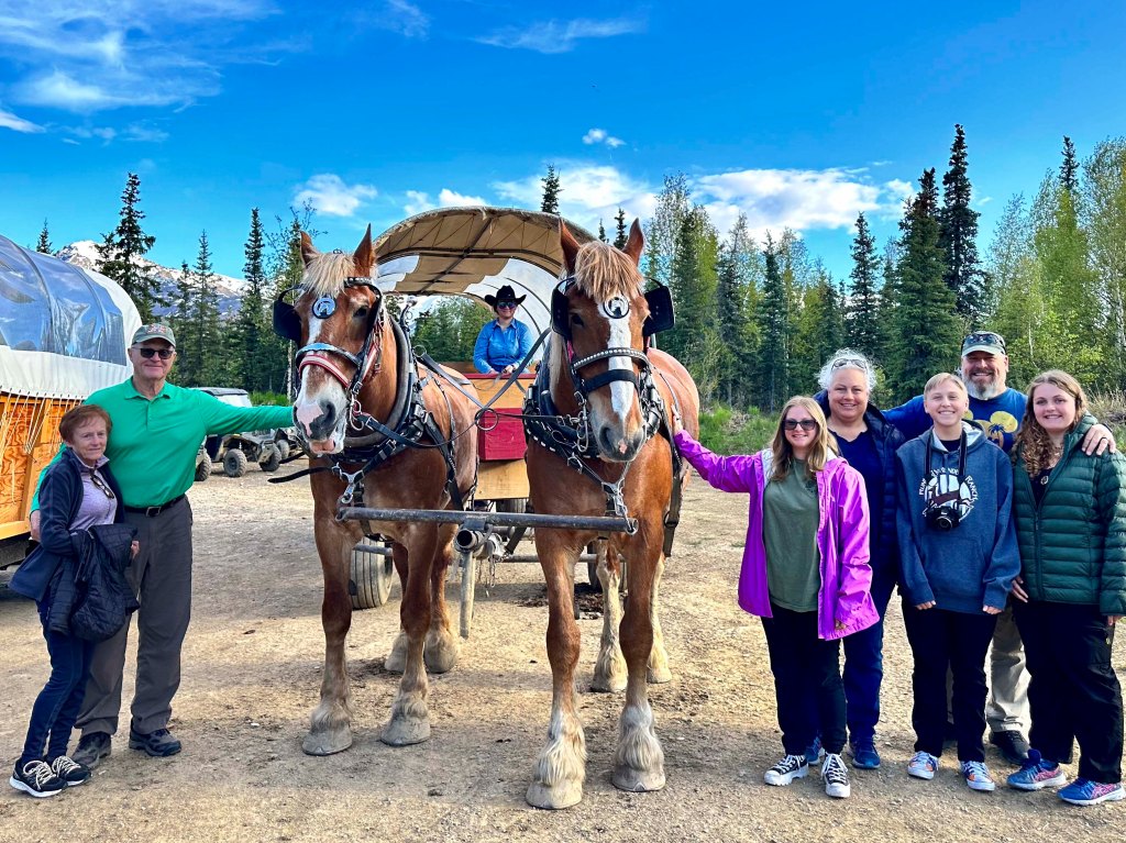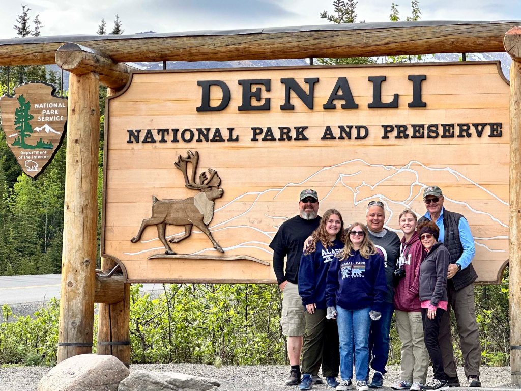 Once finally pulling ourselves away from these magnificent animals, the destination was again the Visitor Center and viewing spot for Denali. And – what a view! There she was in all her glory. Pretty much the entire mountain was visible – a sight only seen by about 30% of the visitors to the park. Another mission accomplished for the “Grands”.