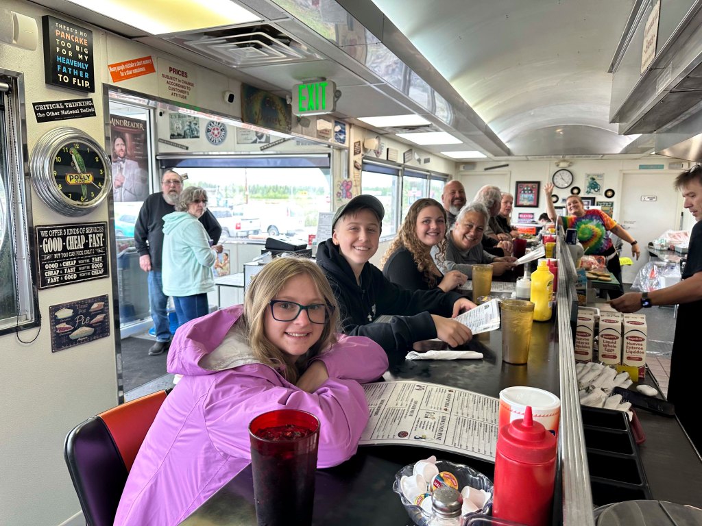 What would a trip to Alaska be without going to the North Pole?!? Yes – Santa spends time at the North Pole just outside of Fairbanks and a visit there provided a silly ‘reindeer’ picture and a shopping opportunity. AND – an old fashioned lunch at Little Richard’s Family Diner.