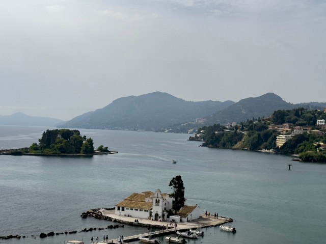 A fabulous respite just beyond Mon Repo is Kanoni. Not a lot to do here, but the views are fantastic. Sit on a terrace, order a coffee or hot chocolate with cream and enjoy the view of Mouse Island and the nunnery of Vlacherna.