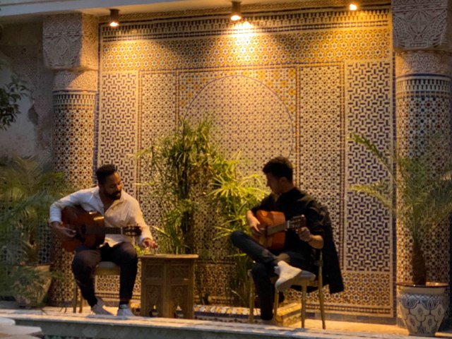 All of this can wear one out, so a nice dinner is called for at Riad Kassr Annoujoum. The Riad was purchased by an Italian and in conjunction with Morocco refurbished the facility. It now provides cultural events, such as the concert during dinner this evening.