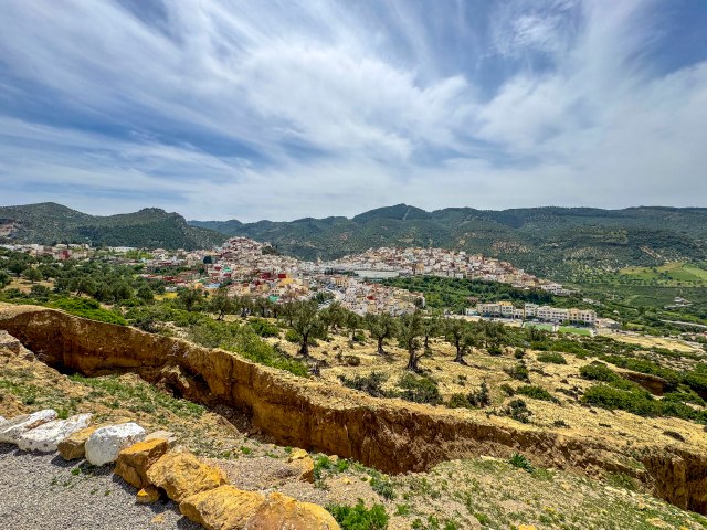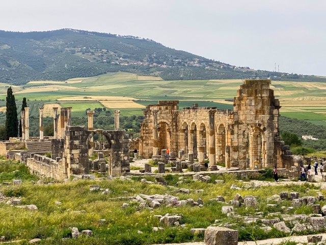 The destination is in sight. Volubilis ruins from a distance.