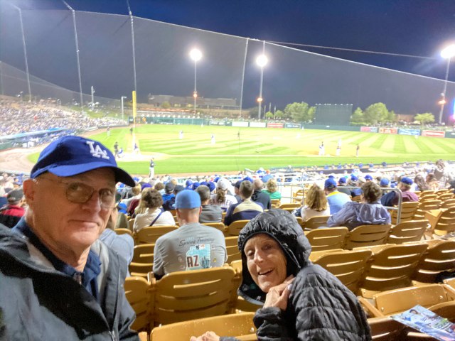 Thank goodness the greater Phoenix valley is home to 1/2 the major league teams for Spring training – so we got to see all but one of our games before sports went away;-( This was opening night for the Dodger’s – and it was still cold!!!