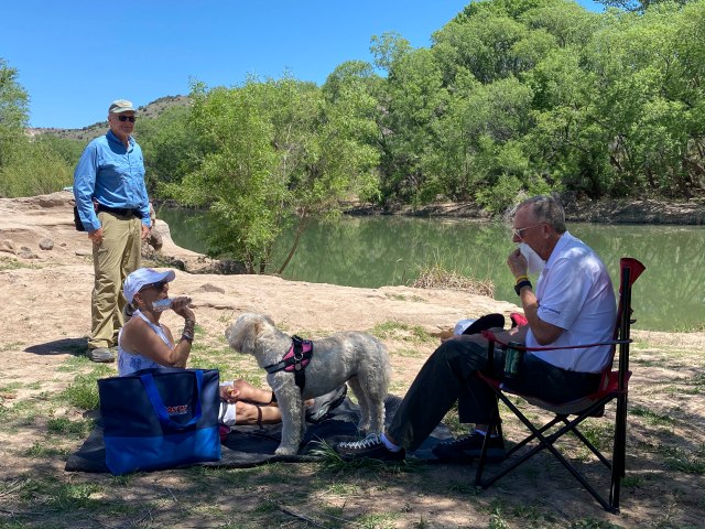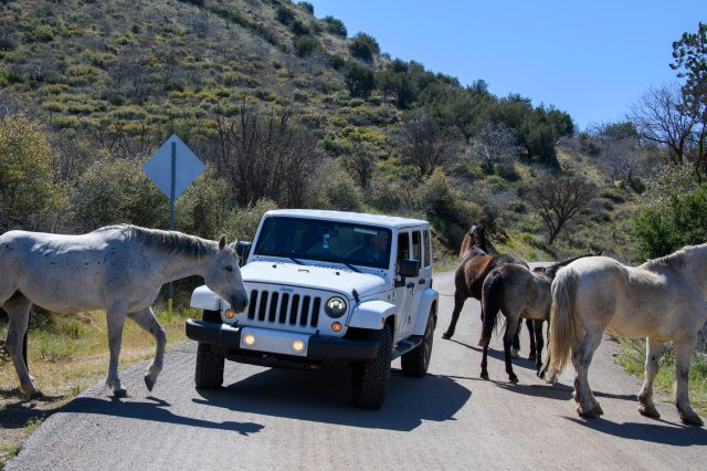 The next week the end of Cave Creek Road was calling. And – we had company this week. The Bolton’s joined us – traveling in their car and keeping distance during stops. Today’s journey took us through creeks, around horses and into a cattle round-up;-) How fun – –