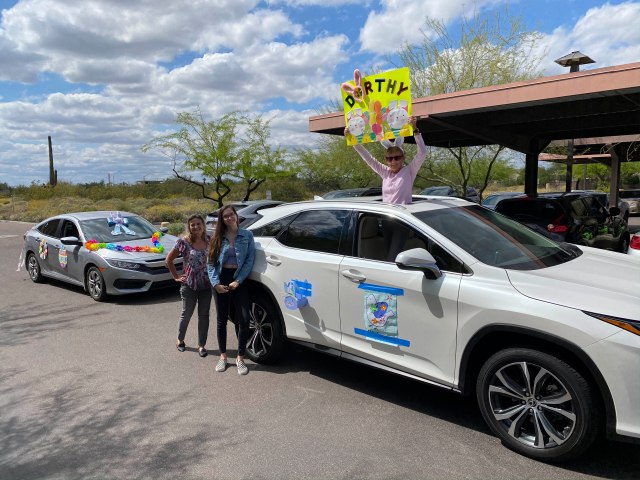 Easter was also unusual. No brunches or gatherings. Since Mom was in lockdown, her facility had a drive-by celebration. The residents’ families were very creative in their decorations and the residents, as well as staff, enjoyed the day. They were also quite surprised that almost 100 cars showed up for the event!! Happy Easter!