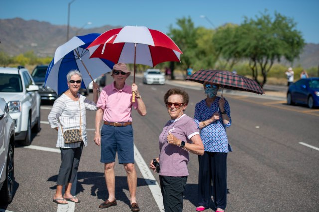 Friends out to see the fly-over (it was HOT).
