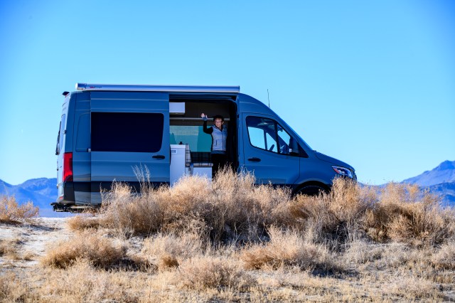 …Elizabeth tried out the driver’s compartment.