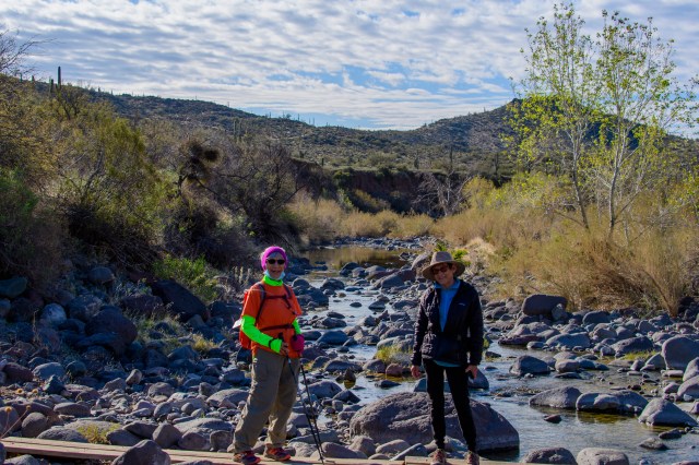 The next week the end of Cave Creek Road was calling. And – we had company this week. The Bolton’s joined us – traveling in their car and keeping distance during stops. Today’s journey took us through creeks, around horses and into a cattle round-up;-) How fun – –