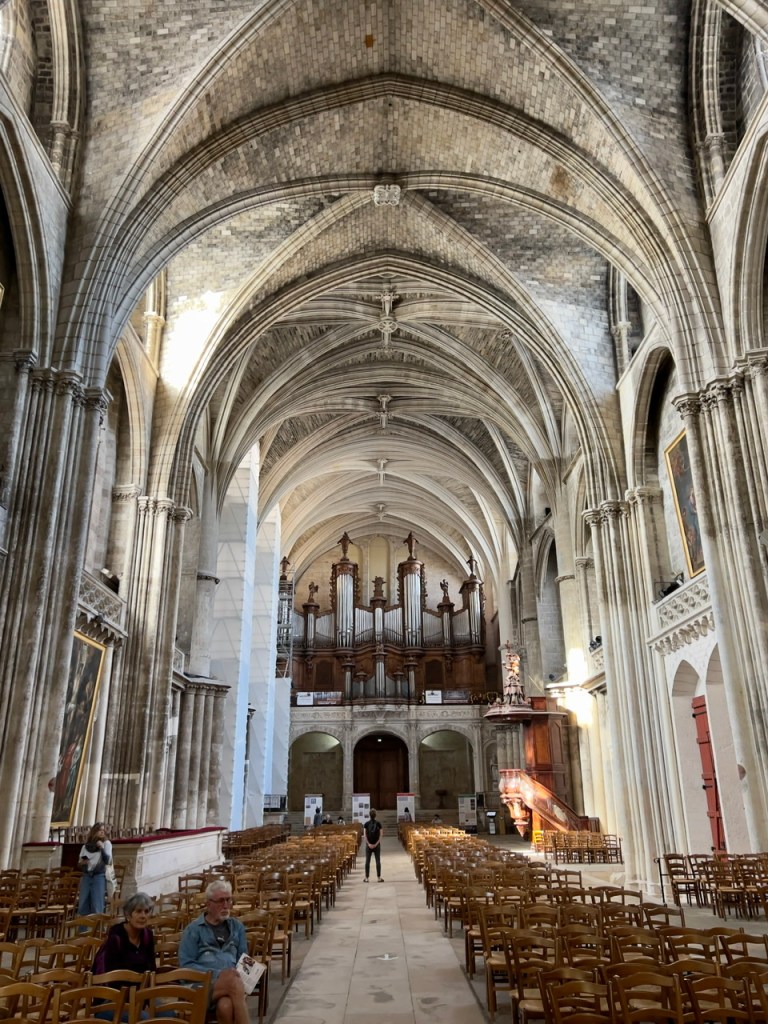 This is the first cathedral in the world dedicated to Saint Andrew, one of the twelve apostles. While a cathedral has been on this site since the 4th century, it is around the 1100’s that the Romanesque cathedral was built and used for the marriage of Eleanor of Aquitaine to King Louis VII. (Eleanor of Aquitaine later became Queen of England marrying King Henry II). It is not the most ornate to be seen, but it’s height and wonderful organ pipes were something to see (and listen to).