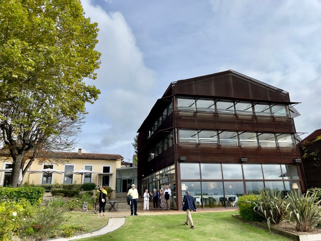 Very interesting bridge that the ship will go under later this afternoon.Bordeaux’s first bridge was built at the request of Napoleon – so that his army didn’t have to cross the River in boats.View from the grounds of the St. James – our gourmet lunch spot in the hills above the city.