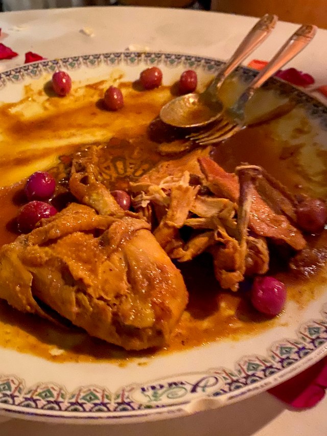 Finally done with this exquisite evening.  The food, service and atmosphere were all superb!  Oh – forgot to mention, there was also fantastic, live background music throughout the evening.  AND – all this for the dollar equivalent of $70 per person.  You read right.  A fantastic evening at an incredible value.  Don’t miss it if you are ever in Marrakech;-)