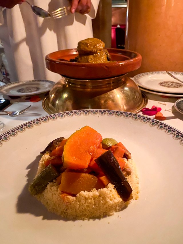 Courses 3 & 4 – lamb tajine and couscous with vegetables.