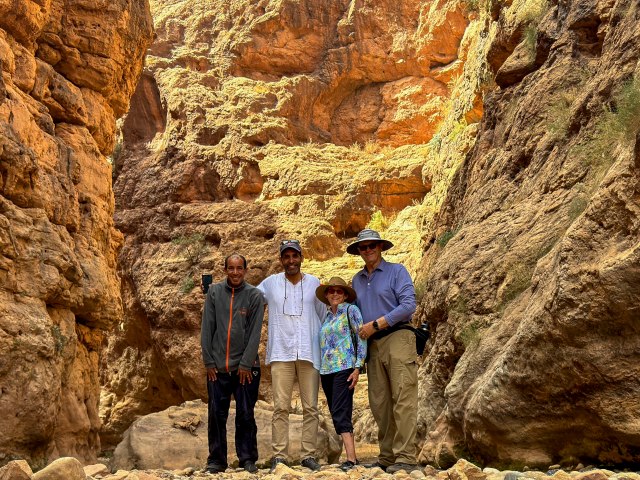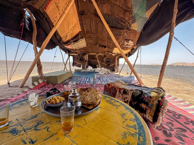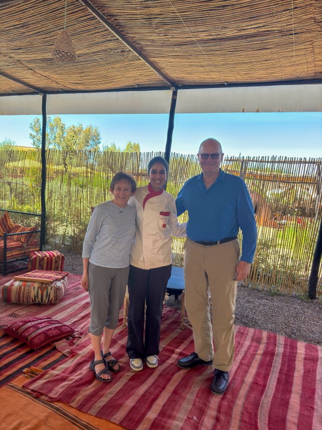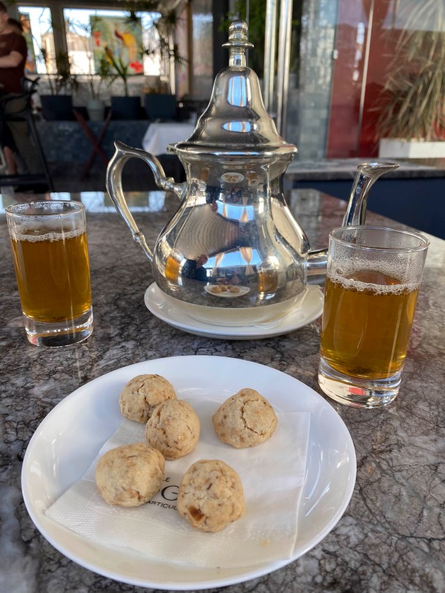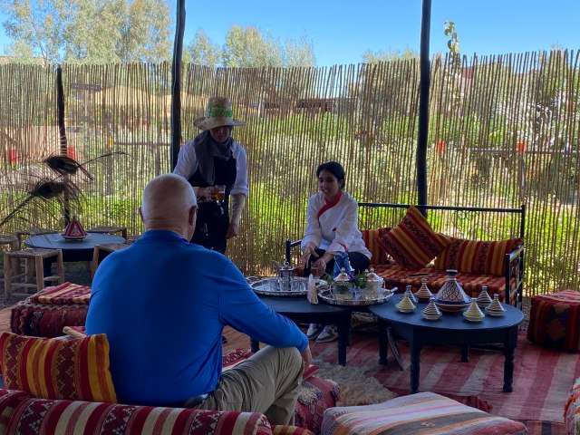 As is typical, the first stop was a welcome with Moroccan tea.  Only this time you learn how to make it and how to ‘salute’ but with the Moroccan “bessaha” – –