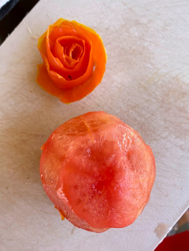 The tomato rose from the tomato skin (made by Elizabeth!).