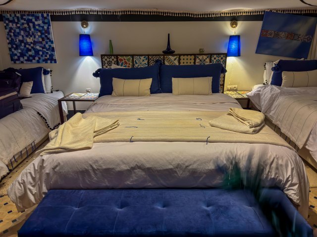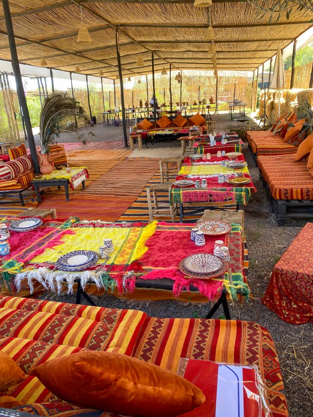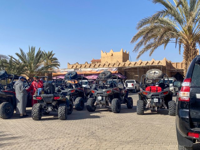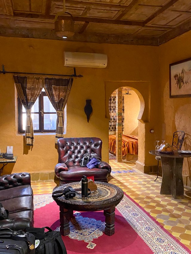 Kasbah Xaluca is HUGE and a bit like a Las Vegas convention hotel😂 – in the middle of nowhere!  It seems that the Rallye Aicha des Gazelles was to begin the next day and hundreds of competitors and all the support staff was being housed here.  You might be able to decipher from the name that this is a race of many types of vehicles ALL DRIVEN BY WOMEN!  Quite an interesting evening after the serenity of Skoura.