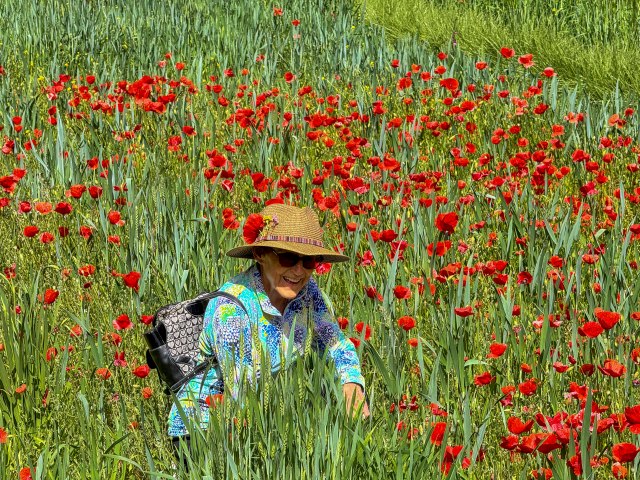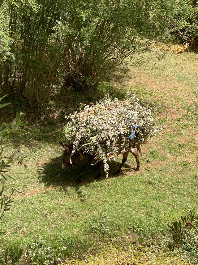 Off we go on a good, sturdy walk through the ‘forest’.  This is actually groves of various types of trees and terraced land that produce goods for food or for sale.  The trees are walnut, apple, quince, olives and cherries to name a few.  The crops include wheat, various spices, onions, asparagus and many others.