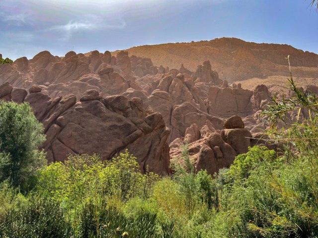 After all this hiking a lunch is in order.  The owner of the store across the street and the lunch spot is know for her kefta – basically meatballs.  Today ground chicken was used and it was delicious in a very scenic setting.  Even here, we had Moroccan tea (as you can see the little tea pot).