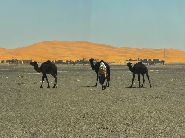 Still several hours to Erfoud, it was time to hit the road again.  Instead of the deer or cattle crossing signs in the US – here one is more likely to see camel crossing signs – and maybe even the camels —