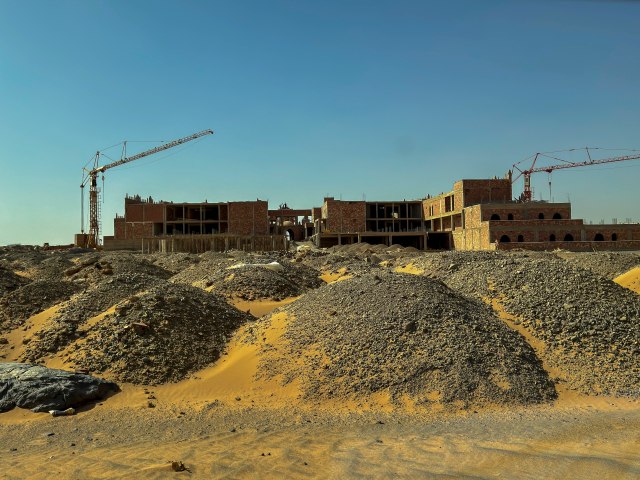 The South Borj sits across the city (just above the barren strip) and matches the North Borj.  Great security for the city!