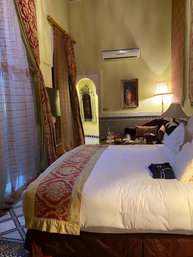 But, a bit of a repeat, as it was wonderful to have a nice, relaxing retreat at the end of daily explorations.  And Riad Fes, a Relais & Chateau property,  was just the place.  The redone Riad was beautiful, the service was superb and the food was elegant and tasty!  From the entry, to the main ‘lobby’ to the rooms and service areas, all were very inviting- – –