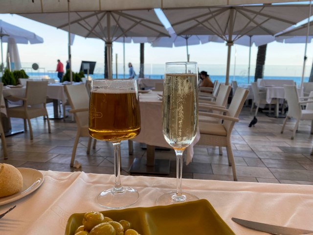 Marbella – nine miles across the Strait of Gibraltar from Morocco (North Africa) but 180 degrees and decades of differences!!  It is one of Europe’s most exclusive resorts sitting on the Mediterranean. So one can imagine it is well presented and constructed with clean white marble buildings surrounded by greenery of every species in beautifully maintained parks and public area.  The welcome of Moroccan tea gives way to Cava/Prosecco and great non-a beer —
